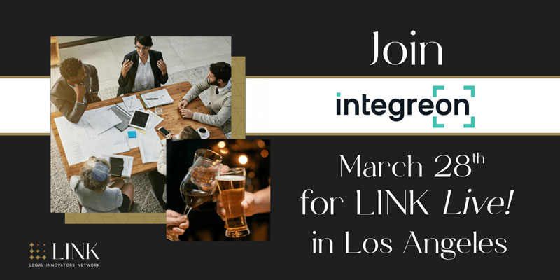 Join Integreon for LINK Live! in Los Angeles on March 28th! This exceptional LINK members-only event will explore groundbreaking legal tech advancements like GenAI, revolutionizing workflow and contract management, and optimizing org design through effective outsourcing, all aimed at futureproofing your legal department.